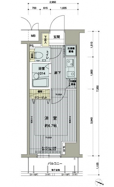 | 専有面積 | 21.68m² | バルコニー面積 | |