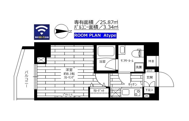 | 専有面積 | 25.87m² | バルコニー面積 | |
