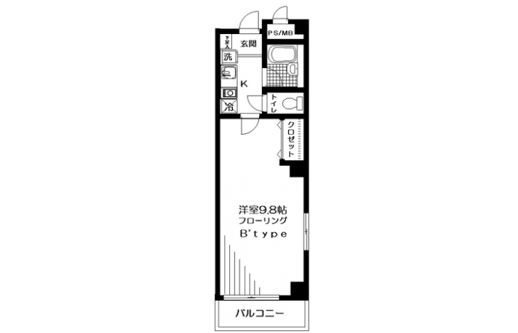 K 1.5 畳 洋室 9.8 畳 |