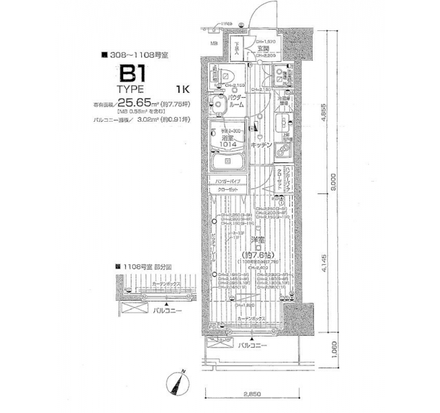 | 専有面積 | 25.65m² | バルコニー面積 | |