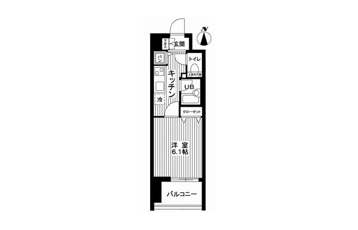 K 2 畳 洋室 6.1 畳 |