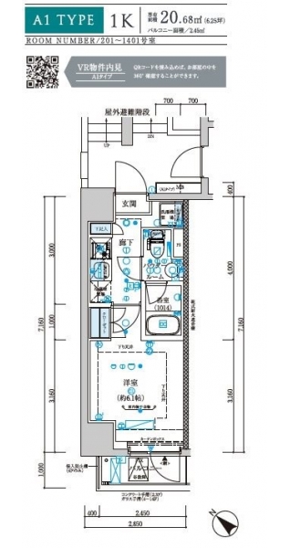 | 敷金/礼金 | *** / *** | 専有面積 | 20.68m² |