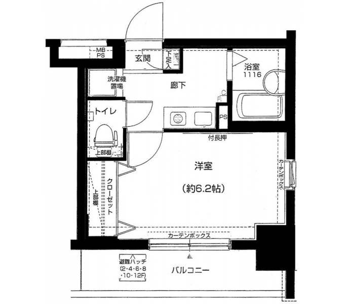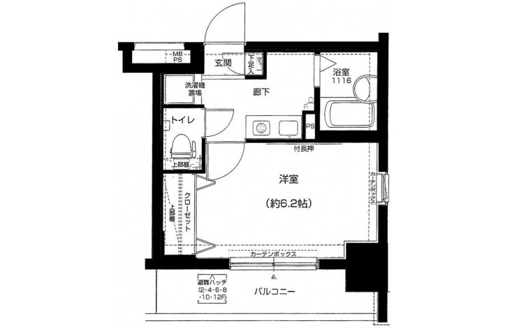 K 2 畳 洋室 6.2 畳 |