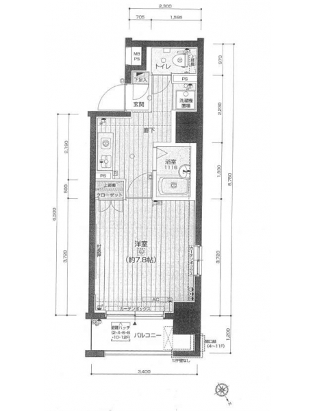 K 2 畳 洋室 7.8 畳 |