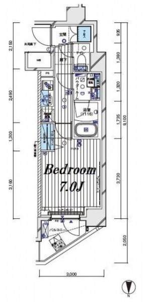 K 2 畳 洋室 7 畳 |