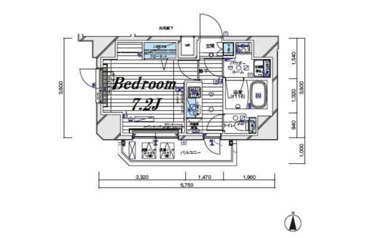 K 2 畳 洋室 7.2 畳 |
