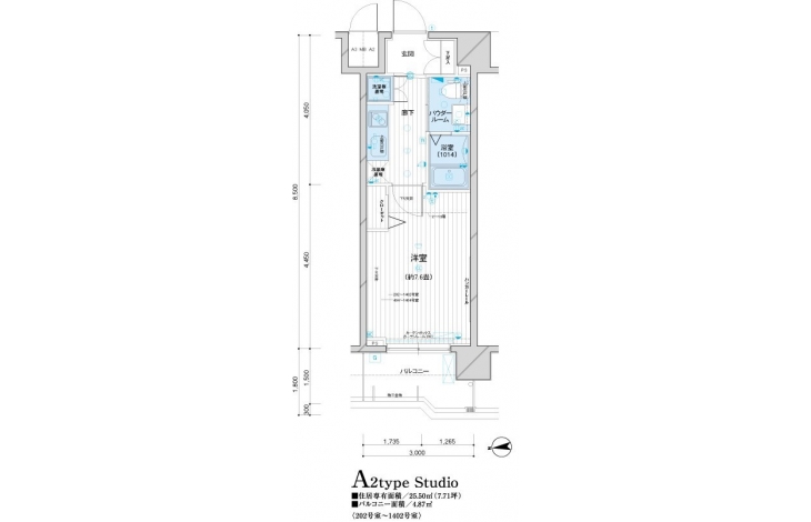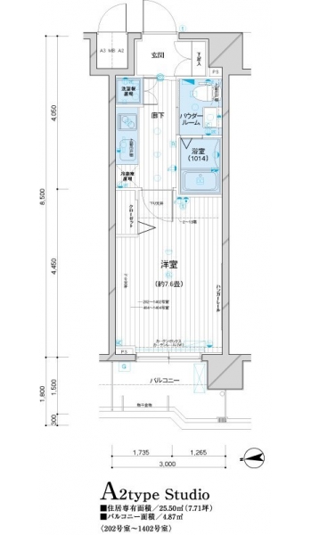 | 専有面積 | 25.50m² | バルコニー面積 | |