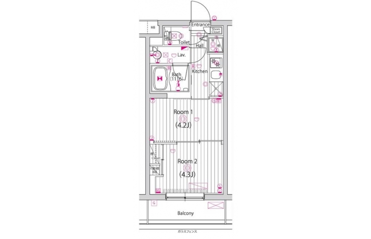 洋室 4.3 畳 洋室 4.2 畳 |