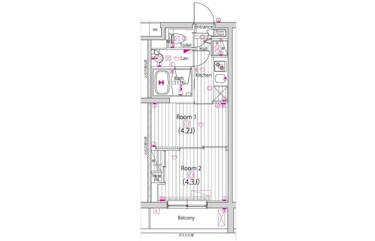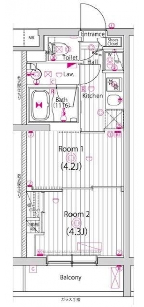 洋室 4.3 畳 洋室 4.2 畳 |