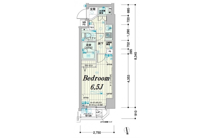 K 2 畳 洋室 6.5 畳 |