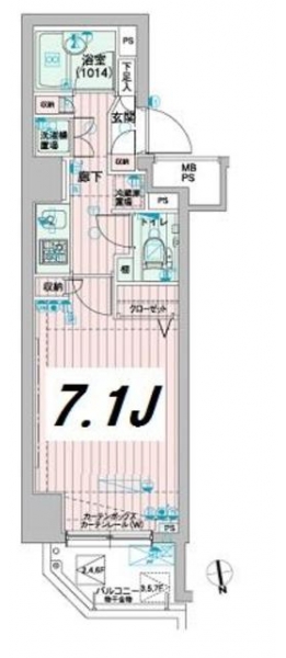 K 2 畳 洋室 7.1 畳 |