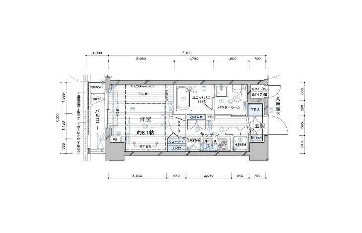 K 2 畳 洋室 6.1 畳 |