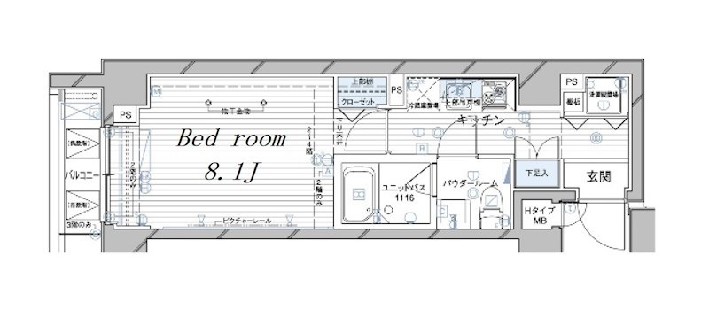 K 2 畳 洋室 8.1 畳 |