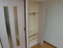 お部屋をより美しく保つために大切な収納力。クローゼットは棚付で容量も充分、洋服などを効率的に収納する事が出来ます。