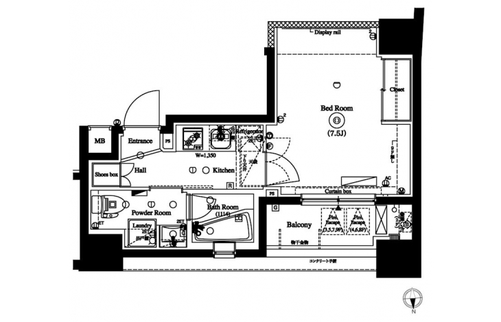 洋室 7.5 畳 K 2 畳 |