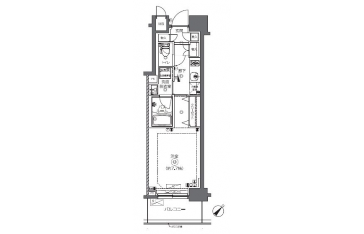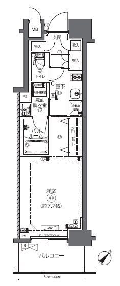 | 専有面積 | 27.66m² | バルコニー面積 | 4.20m² |